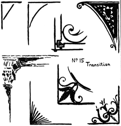A very common example of Transition is the bracket, No. 15. The straight line is modified into curves and may be elaborated with great complexity of modelling.