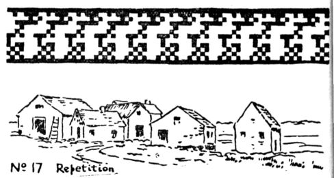 4. REPETITION. This name is give to the opposite of Subordination—the production of beauty by repeating the same lines in rhythmical order. The intervals may be equal, as in pattern, or unequal, as in landscape, see below and No. 20.