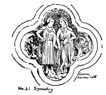 Sometimes construction produces Symmetry, as in the human body; ships; Greek and Rennaissance architecture; furniture; pottery; books. Partly from this cause and partly through imitation, Symmetry, like Repetition, has come to be used in cheap and mean design where no regard is paid to beauty of form. Japanese art, when influenced by Zen philosophy, as Okakura Kakuzo tells us in “The Book of Tea”, avoids symmetry as uninteresting. In Gothic art, the product of richly inventive and imaginative minds, symmetry was never used in a commonplace way.