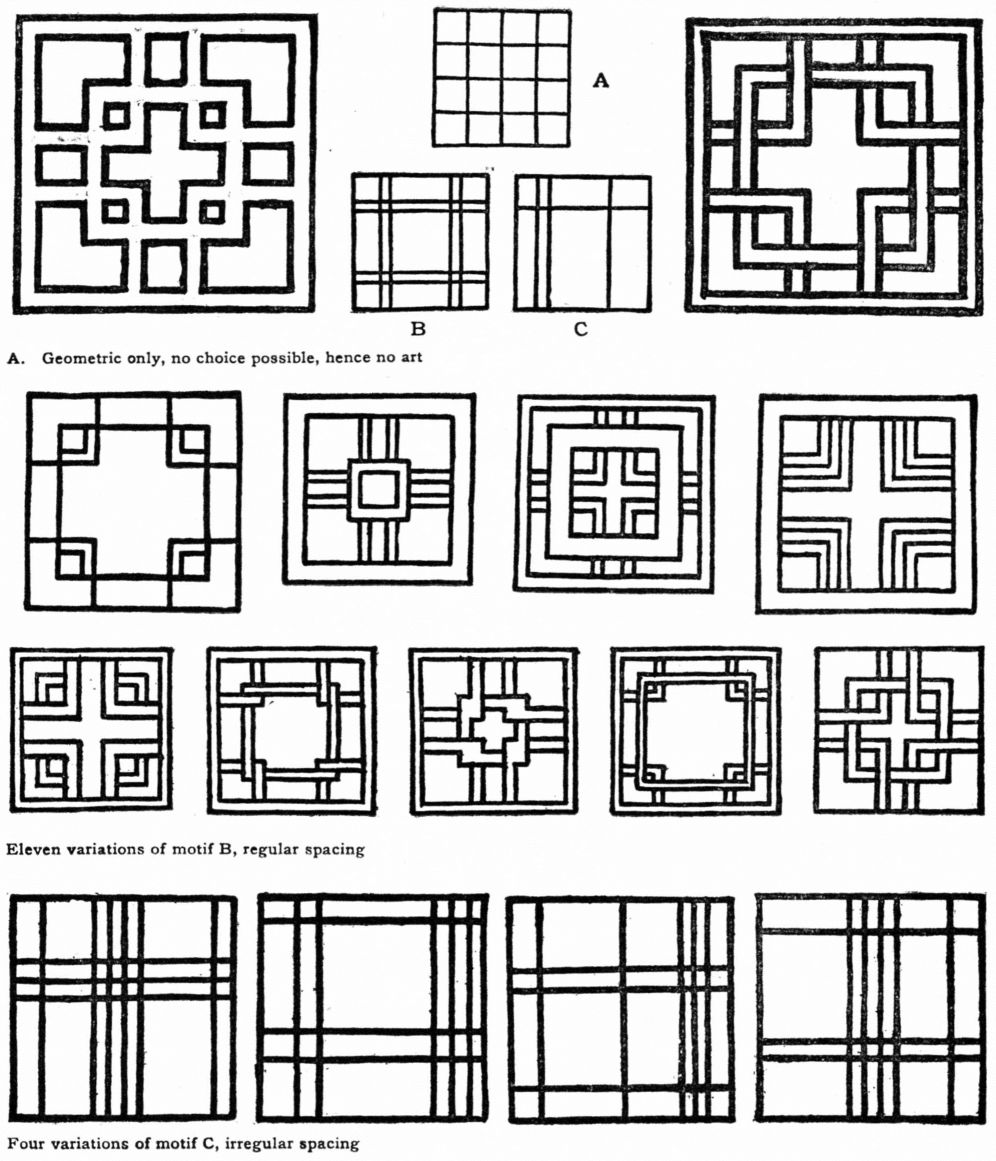 Effective progress in composition depends upon working with an organized and definite series of exercises, building one experience upon another, calling for cultivated judgment to discern and decide upon finer and finer relations. Little can be expressed until lines are arranged in a Space. Spacing is the very groundwork of Design. Ways of arranging and spacing I shall call