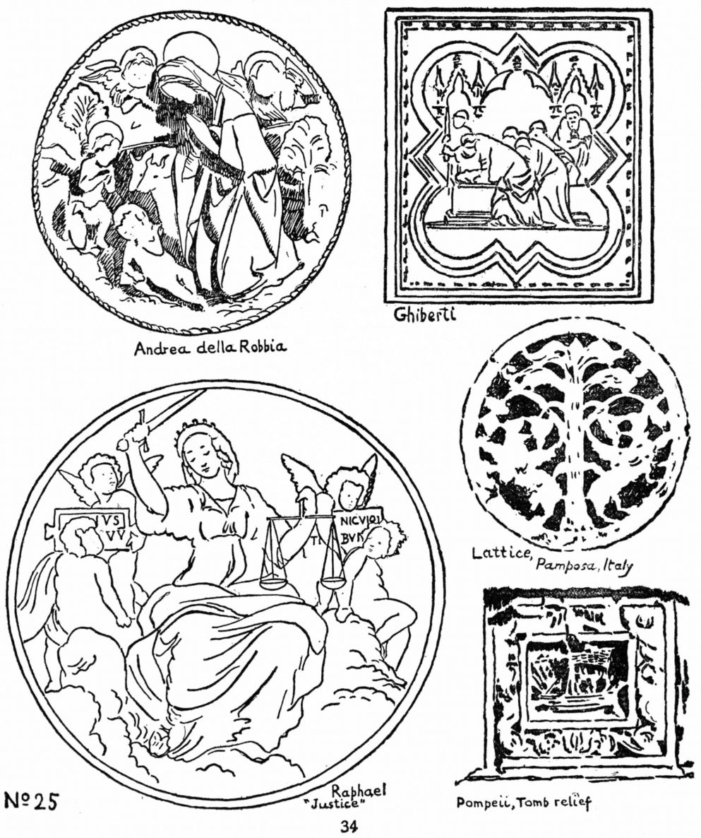 A few examples of Symmetry are given here; the student will readily find others. Exercises can be easily devised, following the steps suggested under other principles. See opposite, and Nos. 42, 43.