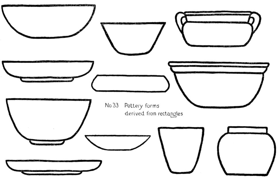 [pg 29]SYMMETRY. The most common and obvious way of satisfying the desire for order is to place two equal lines or shapes in exact balance, as in a gable, windows each side of a door, or objects on a shelf. The term Symmetry applies to three-and four-part groups, or others where even balance is made, but here it refers mainly to a two-part arrangement. Sometimes construction produces Symmetry, as in the human body; ships; Greek and Rennaissance architecture; furniture; pottery; books. Partly from this cause and partly through imitation, Symmetry, like Repetition, has come to be used in cheap and mean design where no regard is paid to beauty of form. Japanese art, when influenced by Zen philosophy, as Okakura Kakuzo tells us in “The Book of Tea”, avoids symmetry as uninteresting. In Gothic art, the product of richly inventive and imaginative minds, symmetry was never used in a commonplace way.