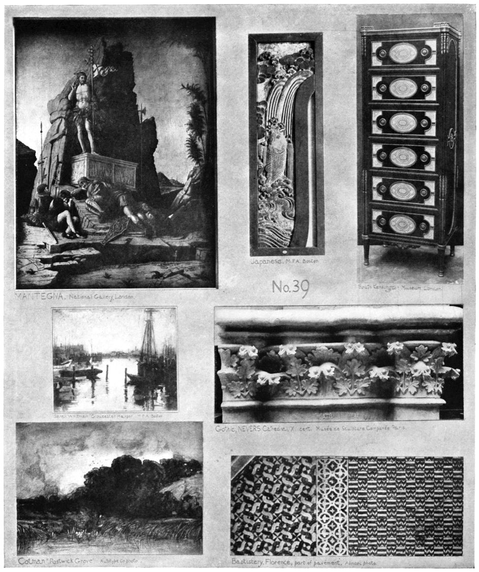 I have not attempted to overthrow old systems, but have pointed out their faults while trying to present a consistent scheme of art study. The intention has been to reveal the sources of power; to show the student how to look within for the greatest help; to teach him not to depend on externals, not to lean too much on anything or anybody. Each subject has been treated suggestively rather than exhaustively, pointing out ways of enlargement and wide application. If some subjects have seemed to receive rather scant attention it is not because I am indifferent to them, but because I did not wish to depart from the special theme of the book; some of these will be considered in future writings. The book will have accomplished its purpose if I have made clear the character and meaning of art structure—if the student can see that out of a harmony of two lines may grow a Parthenon pediment or a Sorbonne hemicycle; out of the rude dish of the Zuni a Sung tea-bowl, out of the totem-pole a Michelangelo's “Moses”; that anything in art is possible when freedom is given to the divine gift APPRECIATION.