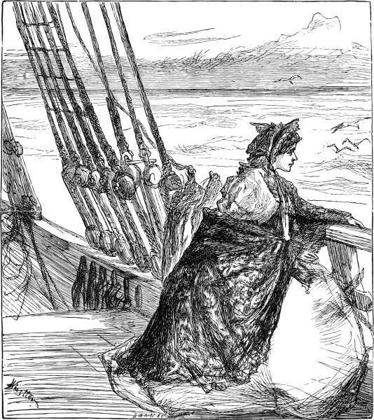 In 1870 Good Words contains four: The Mother and the Angel and three full-page designs, which rank among the most important of the artist's work in illustration, to Tennyson's Loves of the Wrens. This song-cycle, which the late Poet Laureate wrote expressly for Sullivan to set to music, was issued in 1870 in a sumptuous quarto. The publisher, Strahan, who at that time issued all Tennyson's work, had intended to include illustrations, and three were finished before the poet vetoed the project. These were cut down and issued with the accompanying lyrics in Good Words. Although the artist, vexed no doubt at their curtailment, and by no means satisfied with their engraving, does not rank them among his best things, few who collect his work will share his view. Despite the trespass beyond the limit of this book, it would be better to continue the list to date, and it is all too brief. In 1872 Good Words contains five of his designs, and Good Words for the Young twenty-four to Innocent's Island, and eight to Gutta-Percha Willie.
