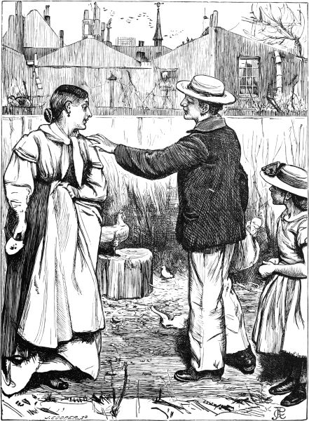 George John Pinwell (1842–1875).—This notable illustrator, whose work bulks so largely in the latter half of the sixties, was born December 26, 1842, and died September 8, 1875. He studied at the Newman Street Academy, entering in 1862. At first his illustrations show little promise; some of the earliest, in Lilliput Levée, a book of delightful rhymes for children, by Matthew Browne, are singularly devoid of interest. No engraver's name appears on them, nor is it quite clear by what process they were reproduced. They are inserted plates, and, under a strong magnifying glass, the lines suggest lithography. The unfamiliar medium, supposing they were drawn in lithographic ink, or by graphotype, or some similar process, would account for the entire absence of the qualities that might have been expected. Some others, in Hacco the Dwarf and in The Happy Home, the latter in crude colours, are hardly more interesting.