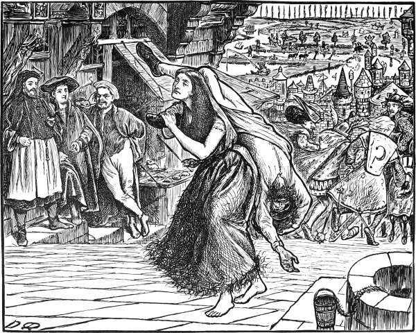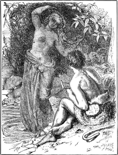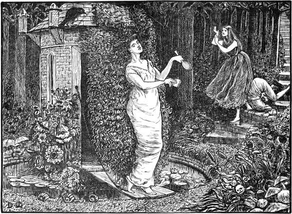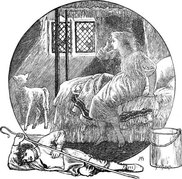 In the Oxford and Cambridge Magazine, 1856, Mr. Burne-Jones wrote of this very design: 'There is one more I cannot help noticing, a drawing of higher finish and pretension than the last, from the pencil of Rossetti, in Allingham's Day and Night Songs, just published. It is, I think, the most beautiful drawing for an illustration I have ever seen: the weird faces of the maids of Elfen-mere, the musical, timed movement of their arms together as they sing, the face of the man, above all, are such as only a great artist could conceive.'