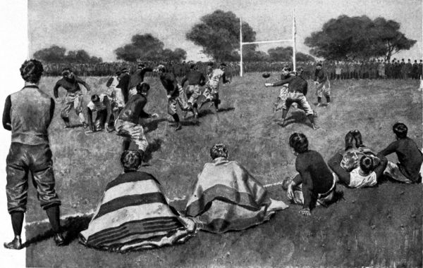 Harvard and Yale were doing battle once more, and twenty thousand people were looking on. The score-board announced: Harvard, 4; Yale, 0. Yale’s ball. 15 minutes to play.