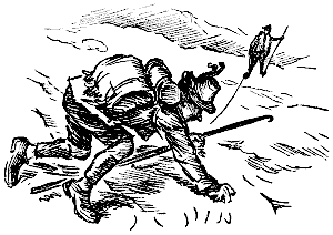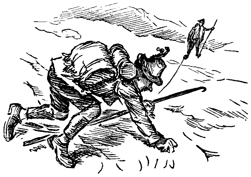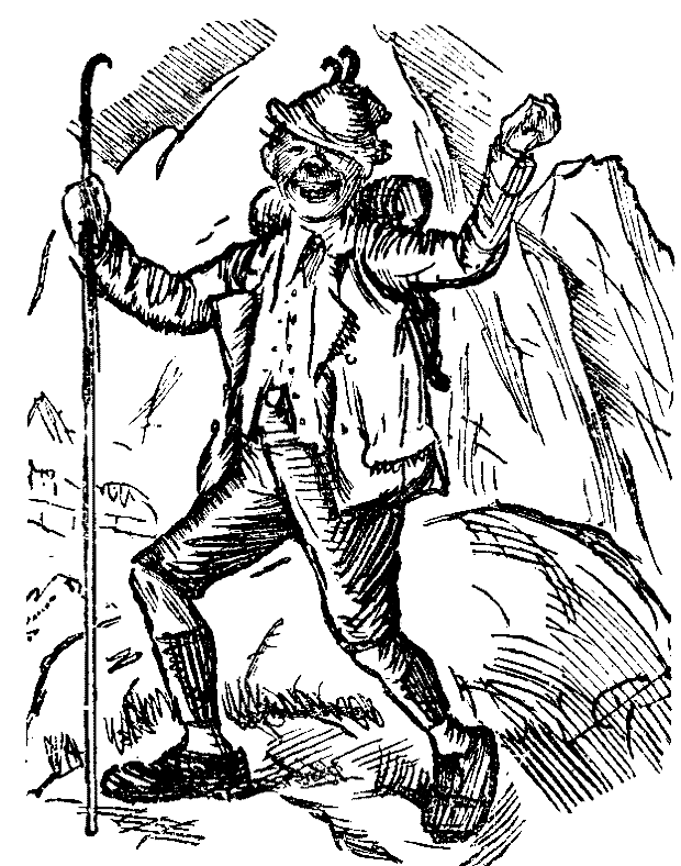"You be blowed?" they both shouted, and the Sphinx gravely inclined its head. Then, of a sudden, after jumping from one mountain-top to another mountain-top, clinging to a precipice by their eyebrows, and sliding down a glacier and an avalanche, the two travellers came to the source of nothing, or, to use the local name, the source of the Nihil.
