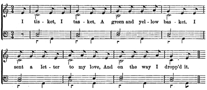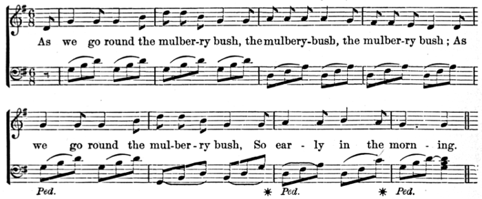 The existence of any children's tradition in America, maintained independently of print, has hitherto been scarcely noticed. Yet it appears that, in this minor but curious branch of folk-lore, the vein in the United States is both richer and purer than that so far worked in Great Britain. These games supply material for the elucidation of a subject hitherto obscure: they exhibit the true relation of ancient English lore of this kind to that of the continent of Europe; while the amusements of youth in other languages are often illustrated by American custom, which compares favorably, in respect of compass and antiquity, with that of European countries.