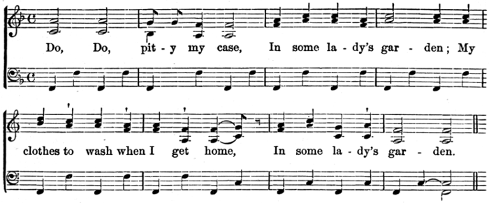 87. Italian (the game, not the rhyme), Ferraro, G. Monfer., No. 10.—Spanish, Marin, i. 48, No. 71. Compare Nurs. Rh., No. 293; Chambers, p. 159.