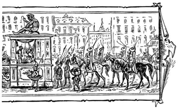 Let us hasten to our balcony, for here passes a[Pg 22] band of musicians, in scarlet and gold, to open the procession.