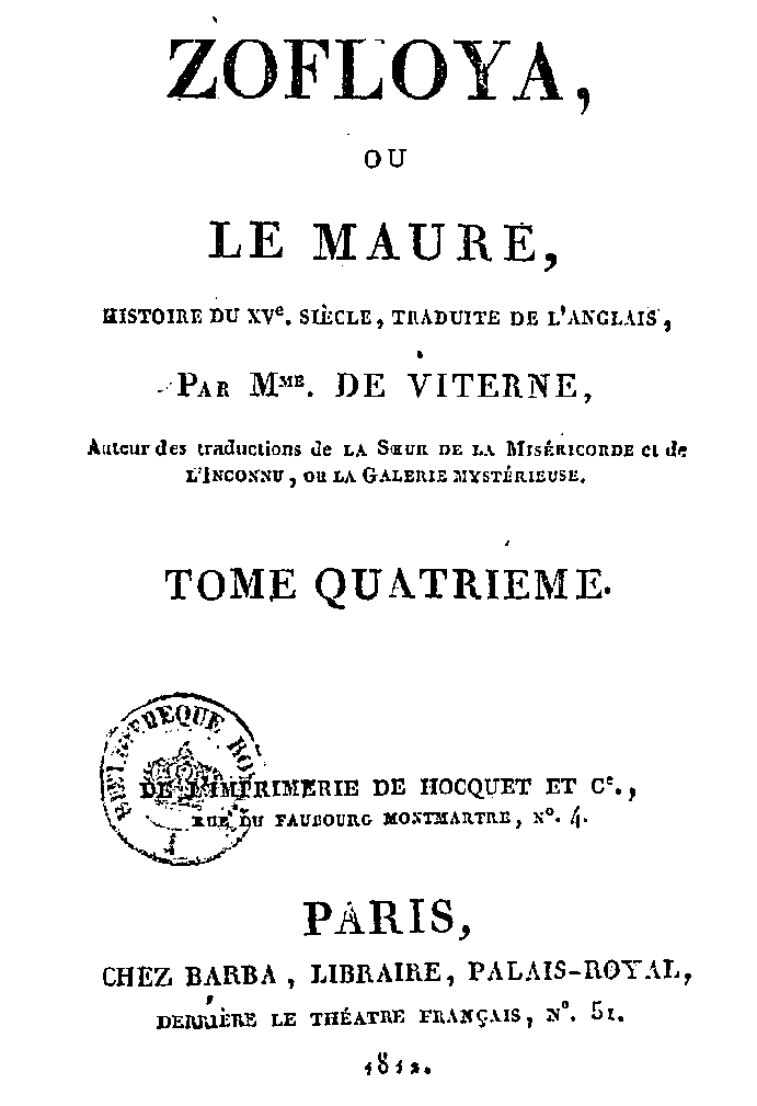 Title: Zofloya, ou le Maure, Histoire du XVe siècle