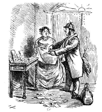 Mrs. Wilkins (the Treasure). "LOR, SIR! I SHOULD NEVER THINK O' FORWARDING SICH THINGS AS THEM. WHY, I SEE THEY WAS ONLY BUSINESS LETTERS FROM THE HORFICE, OR SOMETHINK O' THAT!"