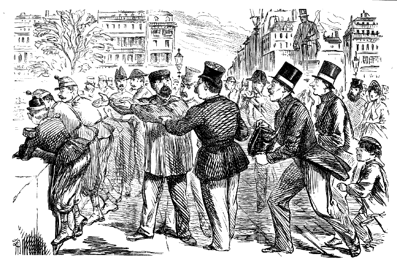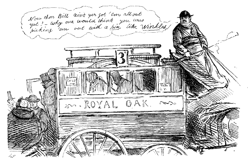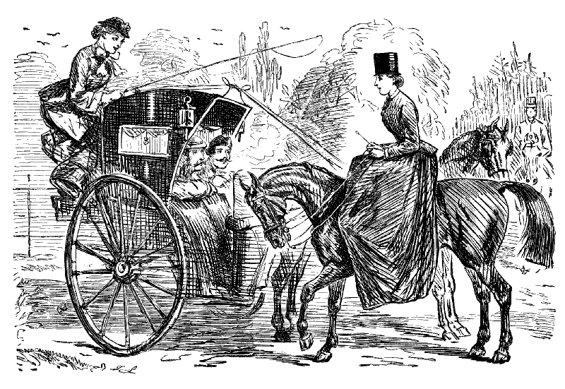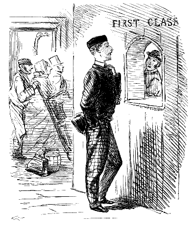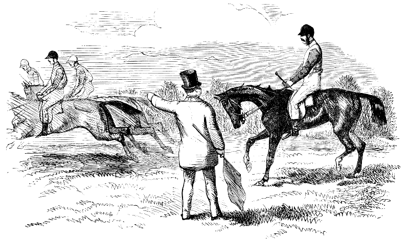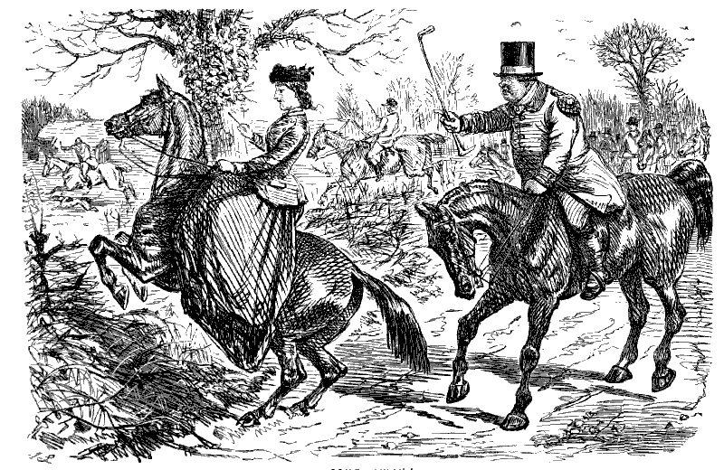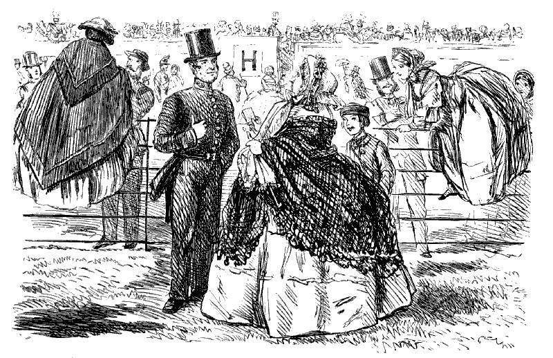 Policeman (who, we are bound to say, is extremely civil). "WHITE TICKET, MA'AM? LETTER H?—YES, MA'AM. QUITE RIGHT. OVER THE HURDLES, IF YOU PLEASE!"