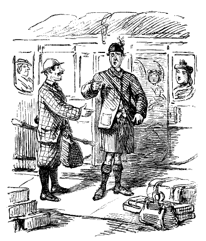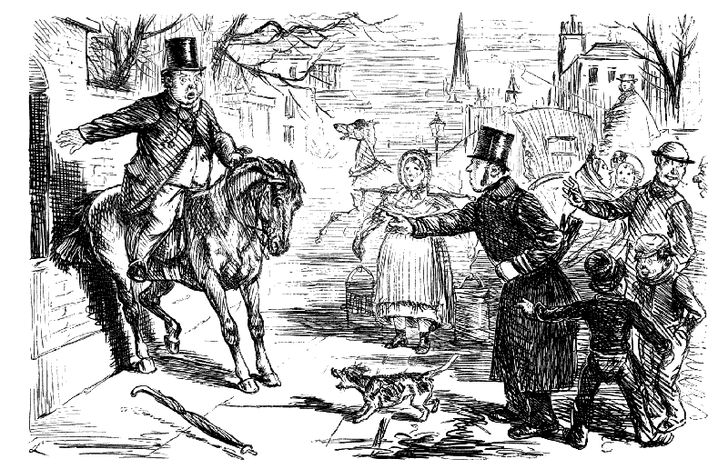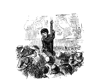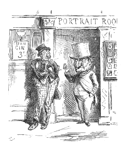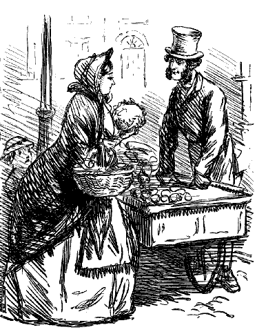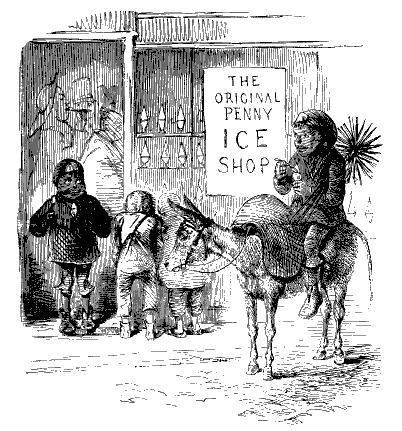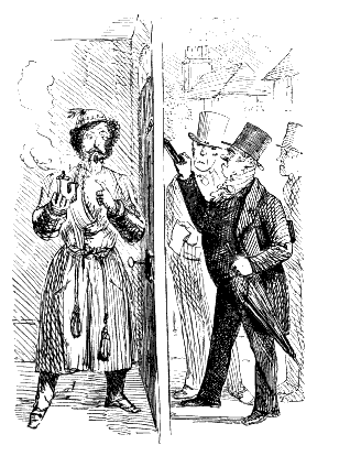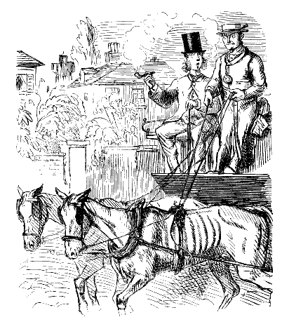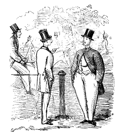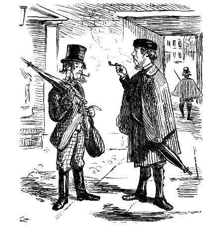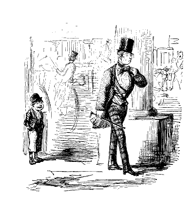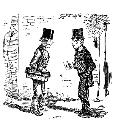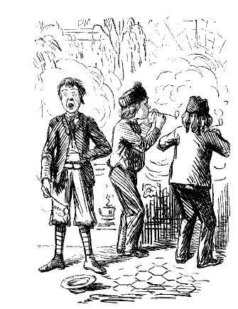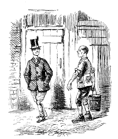 Swell (who has received Four Penn'orth of Coppers in Change). "HERE! BY JOVE, YOU KNOW LOOK HERE! HI! WHAT THE DEUCE!—I SAY—WHAT AM I TO DO WITH THESE HA'PENCE, YOU KNOW?"