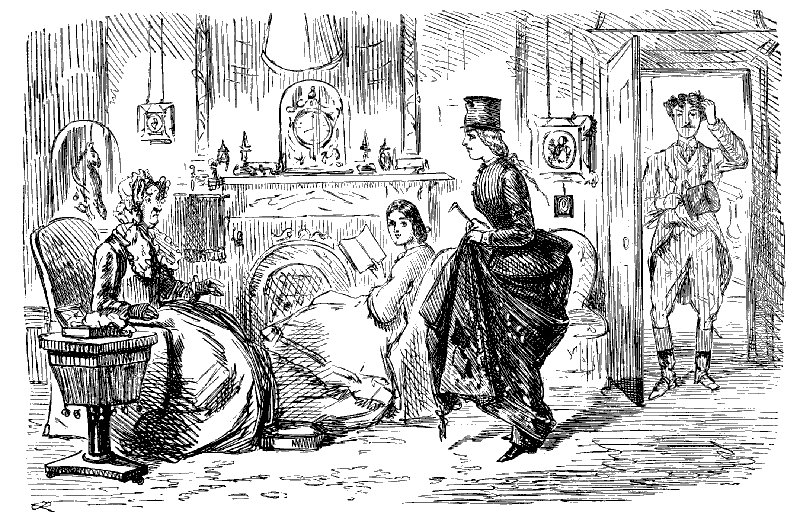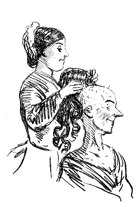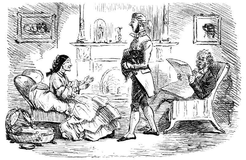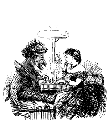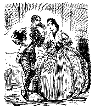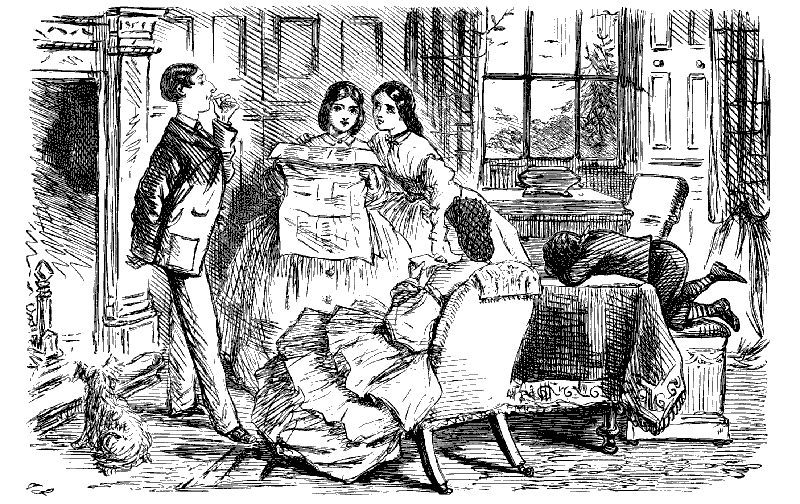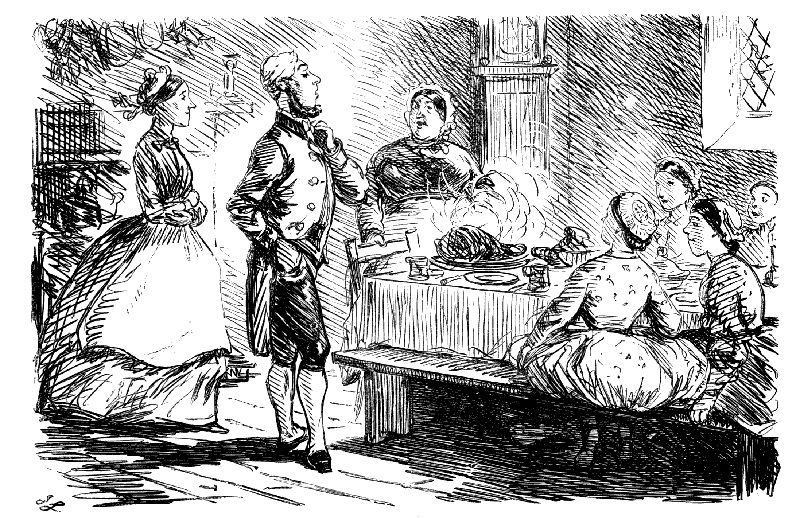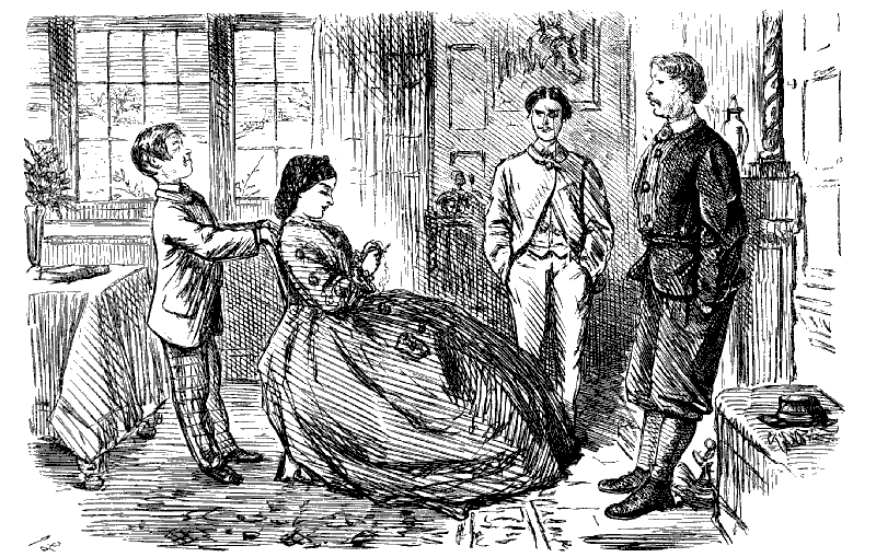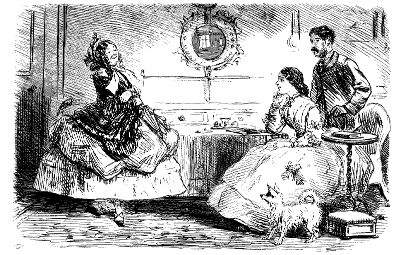 THIS IS THE CRITICAL POSITION OF LOUISA AND CAPTAIN CHARLEY BANG—HIS WHISKER CAUGHT IN HER EARRING, AND PAPA KNOCKING AT THE DOOR!