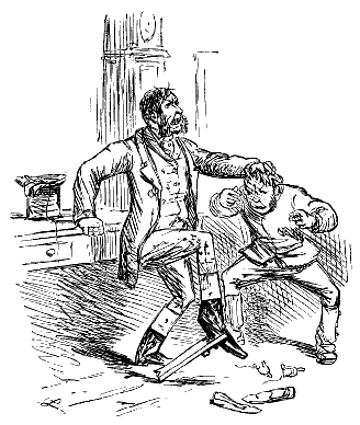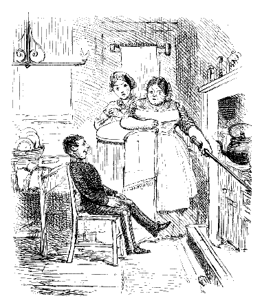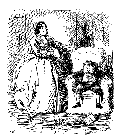 Child. "WELL, THEN, I'M ONE OF THOSE BOYS WHO CAN ONLY BE MANAGED WITH KINDNESS—SO YOU HAD BETTER GET SOME SPONGE-CAKES AND ORANGES AT ONCE!"
