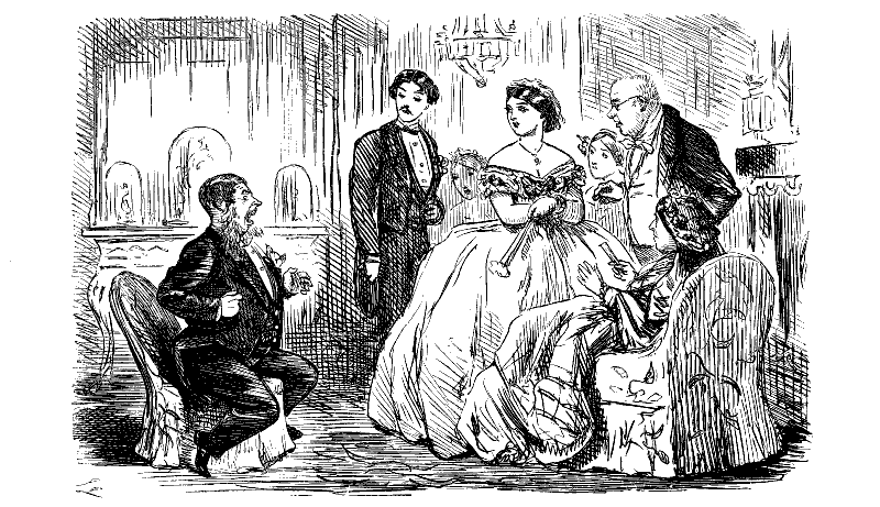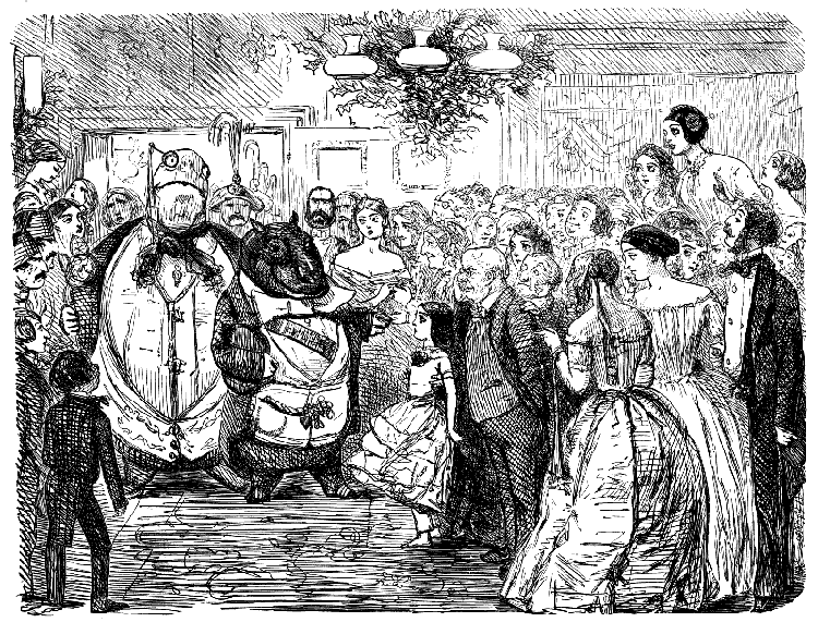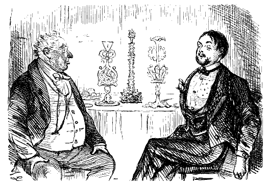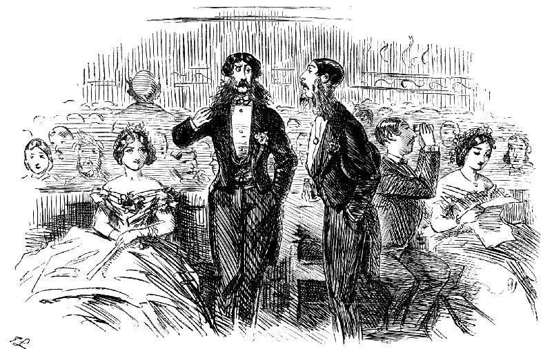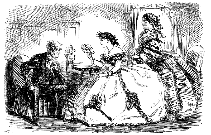 Hideous Old Lady of Fashion (with Plain Daughter). "CHARMING BALL AT SIR CHARLES'S LAST NIGHT! EVERYBODY THERE—GOOD ROOMS, NOT OVER-CROWDED—CAPITAL SUPPER! DEAREST BARBARA ENJOYED HERSELF PRODIGIOUSLY! I DON'T SEE, HOWEVER, HOW I CAN WELL AVOID ASKING HIS SISTER AND NIECE TO MY BALL, NEXT WEEK, HE IS SO FOND OF THEM; AND YET YOU KNOW THAT THEY ARE PEOPLE WHO DO NOT GO OUT NEARLY AS MUCH AS WE DO, AND ARE NOT AT ALL IN OUR POSITION IN SOCIETY!"