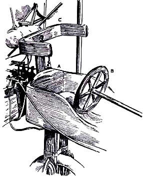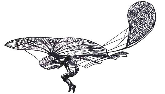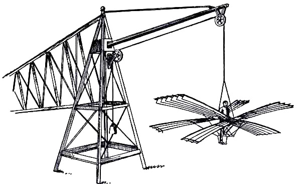 Da Vinci, too, had some notion as to the need for balancing a machine while in the air, and did not seem—like most others of the early pioneers—to imagine that once a man had launched himself from a height he would be able to control his craft by instinct. He wrote, indeed, suggesting the position of a pilot in a flying machine, that “he should be free from the waist upwards, in order that he might keep himself in equilibrium, as one does in a boat.”