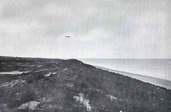 This time, still hugging the coast, you have decided to fly to Dover. Here at Whitfield, a mile or two out of the town, there is an excellent aerodrome, and the flight from Eastbourne is one of 52 miles. But a point to be remembered is that Dover, with its fortifications, which might be spied from the air, has now been declared out of bounds by aerial law, and no pilot—unless he obtains a permit—is allowed to fly nearer than within three miles of its castle. For a British aircraft, however, when bent upon a pleasure tour, there should be no difficulty in securing such an exemption as is required; and we will assume you have been granted one, and have a right to cross the harbour and pass the castle on the hill. Rising quickly, therefore, and with your motor running sweetly, you steer eastward from the aerodrome, and are soon at Bexhill. This gives place to Hastings as the coast sweeps below; and then you see Dungeness, 15 miles ahead, jutting out upon the sea. This reached, and left behind, and you have Dover ahead, with not more than 20 miles to fly; and your pilot, steering a course directly for his goal, takes you out several miles to sea, so that you observe Romney and Dymchurch lying away upon your left.