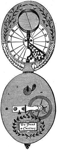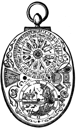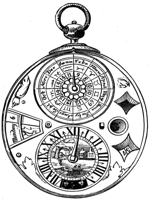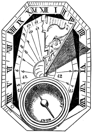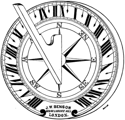 | Note.—Fa. means clock to be fast, that is, your Clock, to be right, must be so much faster than the Sun-Dial—Sl. that your Clock must be so much slower than the Sun-Dial. To set a Clock or Watch on any Day by means of this Table:—Take out the number of Minutes and Seconds which stand against that day, and make your Clock or Watch so much faster or slower (according as the table is marked fa. or sl.) than the time on a good Sun-Dial. Thus, on January 1st, the Clock must be set 3m. 45s. faster or before the Dial; on the 1st of October, it must be set 10m. 16s. slower. Correct the Watch when the Dial marks just an hour, as 9, 10, 11, 1, 2, 3, or 4 o'clock. Noon is not best, nor near Sunrise or Sunset. |