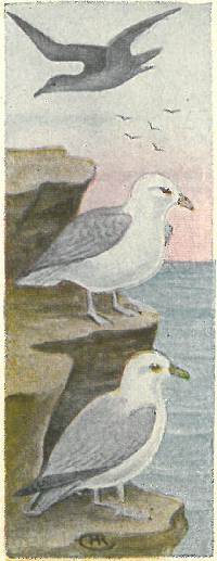 Nest.—Of grasses and seaweed, on the cliffs in the Arctic regions. Three grayish buff eggs are laid marked with brown and black (2.30 × 1.70).