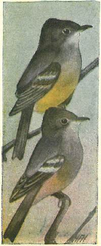 Range.—Western United States, breeding in northern Colorado and California. These birds in their actions somewhat resemble the Redstart, with their long tail, and quick flights into the air for insects and back again to the same twig, possibly near where their nest is placed. They build one of the prettiest of nests, very deep and cup-shaped, and on the top of some moss-covered limb at twenty to forty feet from the ground. Making the nest from plant down and moss, completely covered with lichens, so that it resembles a large knot on the limb, much like the nest of the Ruby-throated Hummingbird. Four or five dull white eggs, spotted with brown (.58 × .45).
