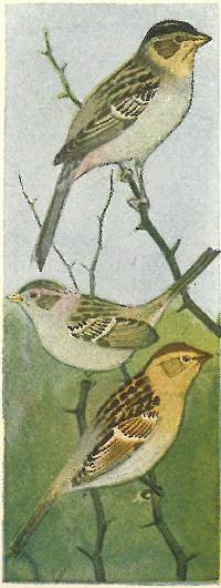 Range.—It breeds on the high mountains of Colorado, California, Alaska, north to the Arctic Zone. During migration they may be found over most of the United States in quite large flocks. Their nests are placed on the ground in tufts of grass, and are made of fine grass and moss, lined with feathers and hair. Four to six eggs are grayish, heavily blotched with brown (.75 × .55).