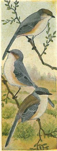 Range.—From Lower California and Mexico on the plains to Montana. This is an abundant bird in the sage regions of the plains throughout its range, and are frequently called the Mockingbird, on account of the varied song which they give from the top of some sagebrush or cactus, in which they nest. Four eggs, greenish, spotted with brown (.60 × .55).