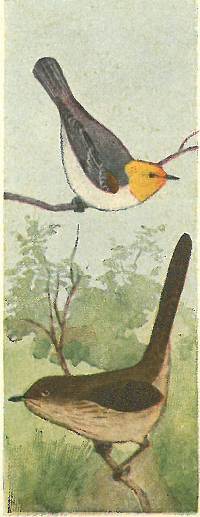 Range.—Alaska to Mexico, breeding in its extreme northern range. These birds are noted for their sweet and musical song, which may be heard from the swamps and thickets in which they make their home. They nest either on or near the ground, building it of shreds of vines, leaves and grasses. Four bluish green eggs, unmarked, are usually laid (.85 × .65).