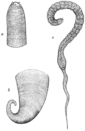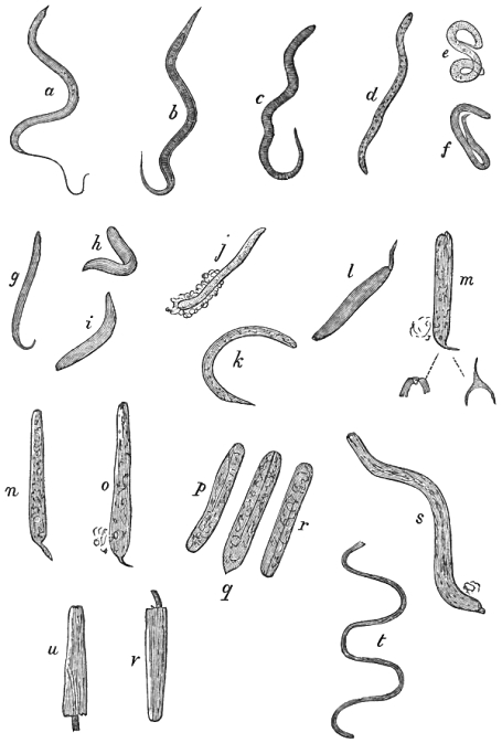 To the naturalist the second half of this book addresses itself in a very direct manner. When engaged in his dissections, an appeal to its pages will often enable him to decide at once as to the species of parasite accidentally encountered, and if a full diagnosis be demanded it will guide him to better sources of information. Many hundreds of correspondents, not having ready access to the systematic writings of Rudolphi, Diesing, and Dujardin, have requested me to identify their “finds.” I have rarely or never failed to comply with their requests; but it is hoped that the present work may prove of ready service to subsequent inquirers, and thus place a reasonable limit upon the number of future applicants. Since the manuscript of this work was completed I have received Dr von Linstow’s Compendium der Helminthologie, which, for the purposes held in view by the author, leaves little to be desired.