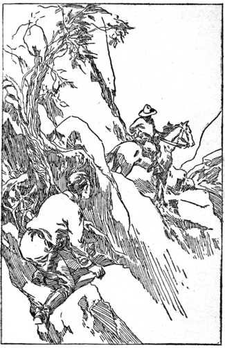 “They don’t, eh?” jeered Tom Gray as a bullet flattened itself on the rocks just above the opening into the cave. “Keep down in there!”