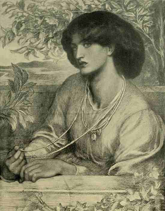One might hazard the question whether it were possible for a painter such as Rossetti, seeking expression in his art for this intensity of feeling, to vie in the rendering of the external aspects with those painters who have approached life with that cold acuteness to the appearance of things and aloofness from their meaning characteristic of work that has contributed largely to the actual science of painting. To Rossetti life came over-crowded, over-coloured. There was too much for him to realise in his working moments. The very richness of his nature embarrassed his output. His gifts gave him so many ways of self-expression from which to choose. The phases through which his genius passed, the result of an inherited and rare temperament and its adventures, made the science of painting prosaic for him. He himself felt latterly [Pg 8] that this impatience had left his ideas pathetically at the mercy of his materials. Apart from the quality in colour to which he attained, one is conscious always in his paintings of the tragedy of genius striving for expression through an ineffectual technique. Rossetti's individuality, however, was so strong that it stamped itself everywhere; in spite of every limitation his art explains his attitude towards life. In his ability to make it show this his greatness lies, and in the fact that the point of view that it suggested was his alone. His art created for itself its own atmosphere—an unfamiliar one at first to Englishmen, with its subserviency of everything to a romantic emotionalism. The histories of the world for Rossetti were its stories of emotion, and in every place that his memory knew Love's image had been set to reign, Love who had wandered down through the ages decked with the flowers of art, offerings of bygone lovers, dead lovers to never dying Love. As a strange spirit Rossetti entered modern London. A heart rich from many forgotten experiences seemed to have lodged itself in him and he painted with eyes filled with the colours of old things. For him the tapestries could never fade in a room that had known love's history, nor the colours leave the missal which told the story of a soul.