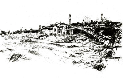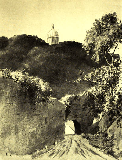 As we drew near the Eternal City across the many-bosomed desert of the Campagna we saw St. Peter's dome hanging like a mirage on the grey thunder-clouds, more like a mountain than a church, dwarfing Monte Mario. And we thrilled at the thought of nearing Rome, feeling the contentment that human beings feel towards each other when they meet a dear friend after long years of absence, knowing that, the strangeness of the first moment over, they will find themselves settled down with few words into the old dear comradeship of yesterday.