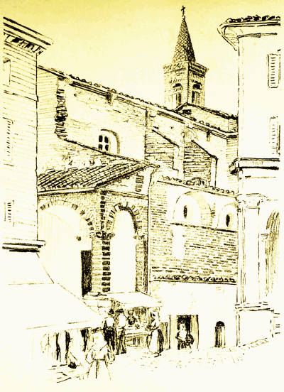 It was in Foligno, seeing that fair white road which threads the rich valley of Spoleto, now skirting the Hill of Trevi, now leading through the olive gardens of Le Vene to the crystal springs of Clitumnus, that we first began to think of Rome. Up to that time we had not raised our eyes to the horizon. The beauty of the road itself had led us on, but now, though she was still far off, we felt once more the magnetism of the great Mother of Cities. Truly in Italy every road must lead to Rome. Many times we had been greeted with the words,'E Roma? Andate ancora a Roma?'—in little Passignano that gazes like Narcissus into the mirroring waters of Thrasymene, rapt in the contemplation of her own beauty; in far-off Gubbio, wistful and forlorn in the shadow of her great hills; in San Marino, the eagle nest where Liberty has taken refuge upon a mountain top. And when we told our simple questioners that we knew the city well, they pressed to hear what she was like, this città bella e magnifica, whose light shining upon their horizons they perhaps might never see. We had not dreamed that she was so[354] beloved. But at the oft-reiterated question some flame of enthusiasm, which we had thought quenched, began to burn again, and Rome became the secret goal of our pilgrimage, until we thrilled to see that white road leading through the plain from the walls of Foligno, because it had become the symbol and expression, as it were, of our desires.