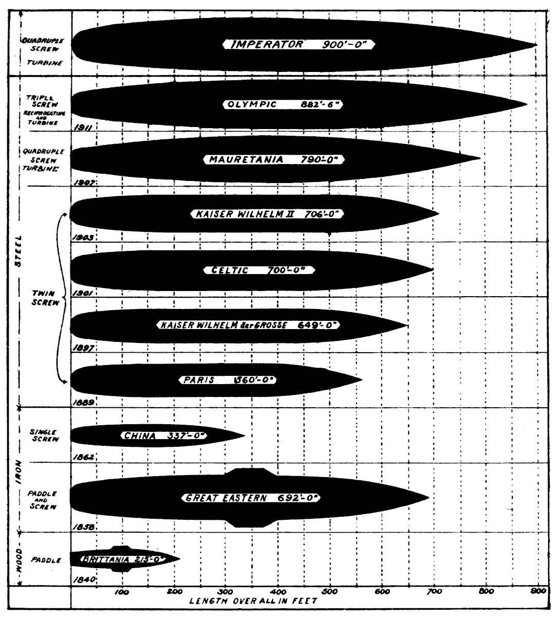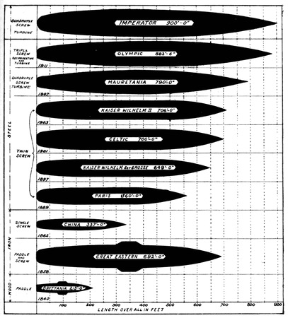 Note how far the Great Eastern was ahead of her time. She was not exceeded until the advent of the Oceanic in 1899.