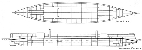 By the courtesy of Naval Constructor R. H. M. Robinson, U.S.N., we reproduce on page 143 from his work "Naval Construction" a hold plan and an inboard profile of a typical battleship,—the Connecticut,—which give a clear impression of the completeness with which the interior is bulkheaded. Although the ship shown is less than one-half as long as the Titanic, she has 27 transverse bulkheads as against the 15 on the larger ship; and all but nine of these are carried clear across the ship from side to side.