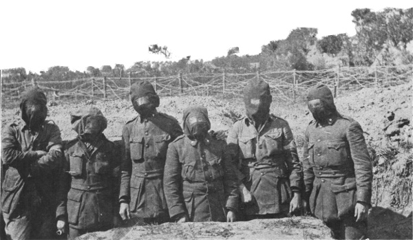 | Americans in their Gas-Masks in front of the Bomb-proof Shelter outside of the Headquarters | 118 |
