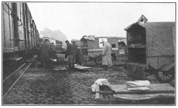 | Stretchers slung between Two Wheels on their Way from the Trenches | 156 |