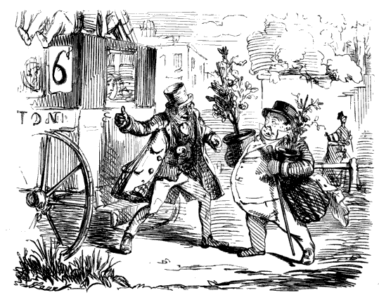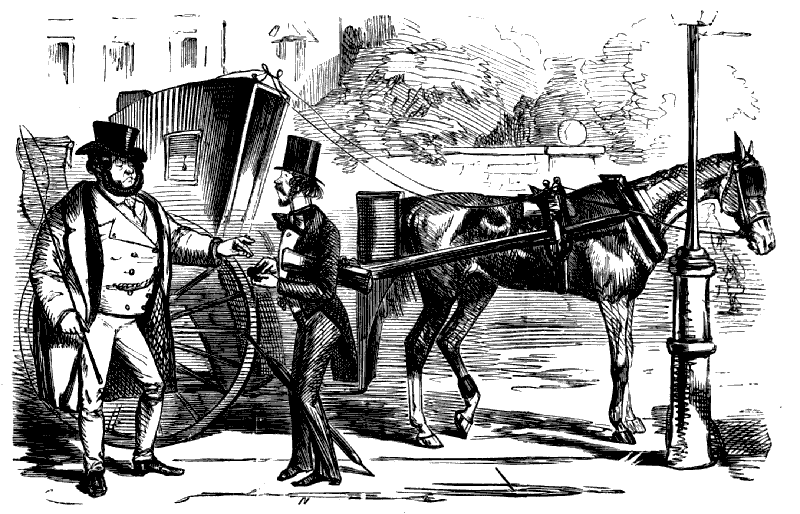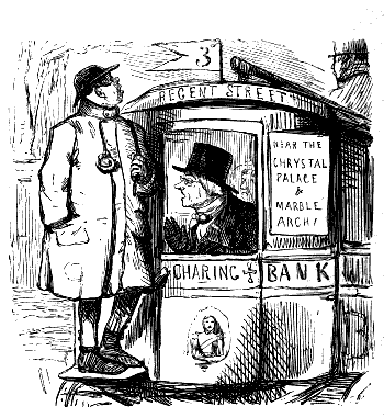 Old Gentleman (politely). "OH, CONDUCTOR! I SHALL FEEL GREATLY OBLIGED TO YOU IF YOU WOULD PROCEED, FOR I HAVE AN APPOINTMENT IN THE STRAND, AND I AM AFRAID I SHALL BE TOO LATE."