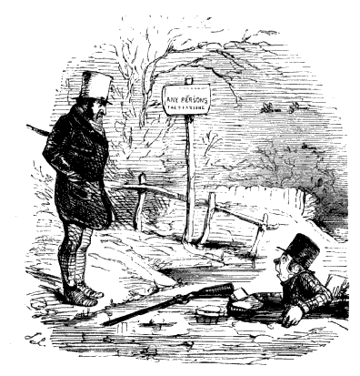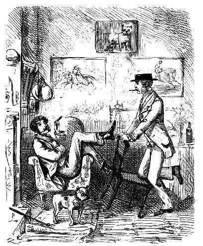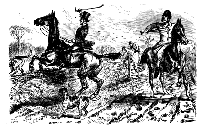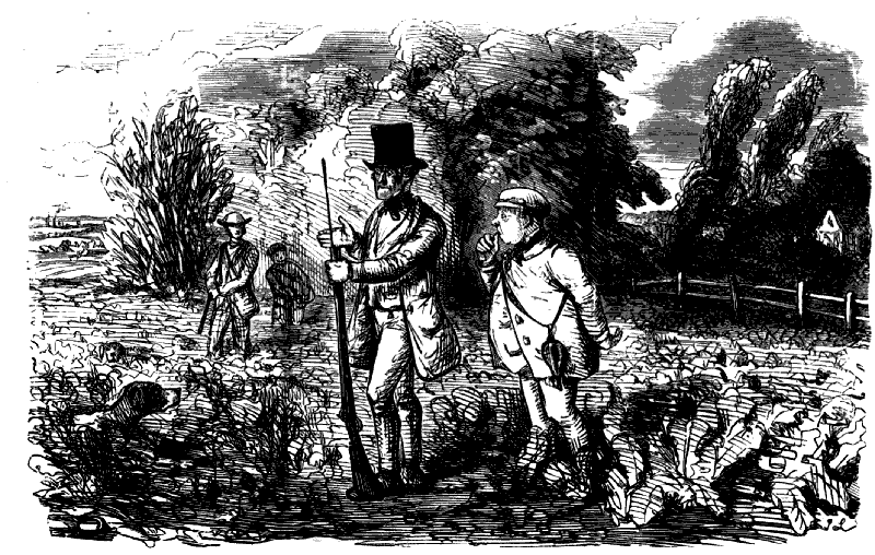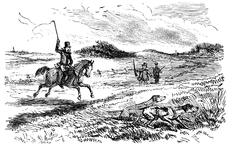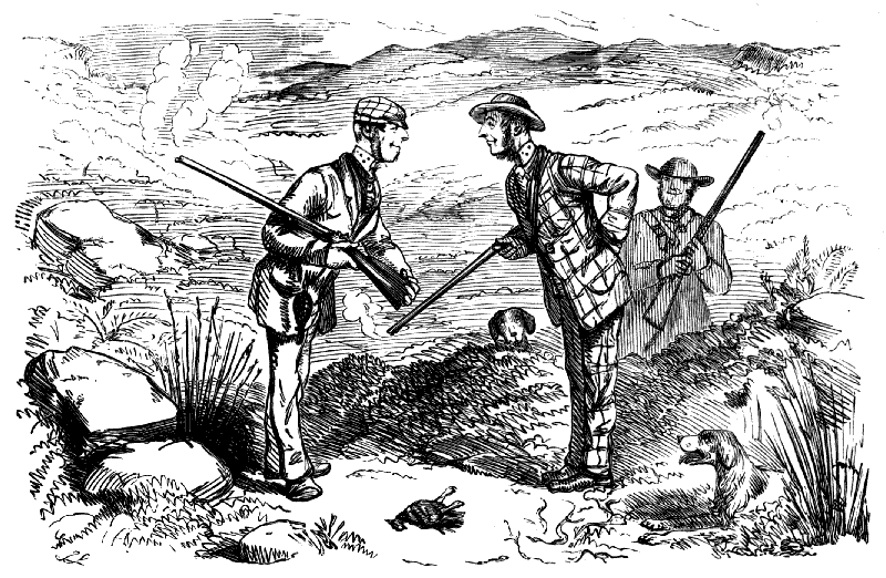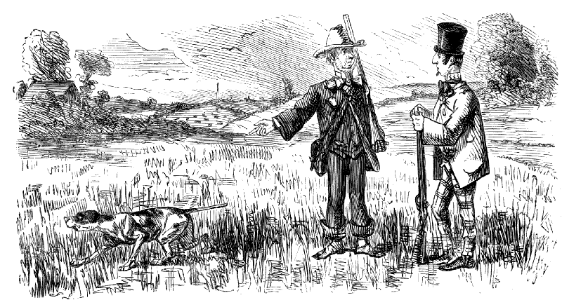 "I TELL YER WHAT IT IS, SAM! IF THIS FOOL OF A DOG IS GOING TO STAND STILL LIKE THIS HERE IN EVERY FIELD HE COMES TO, WE MAY AS WELL SHUT UP SHOP, FOR WE SHAN'T FIND NO PARTRIDGES."
