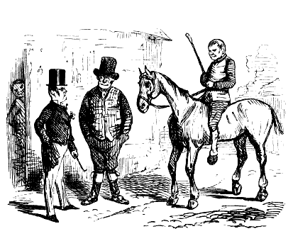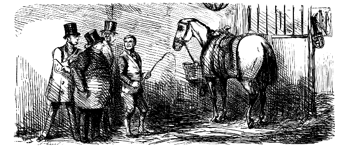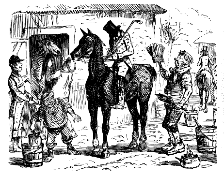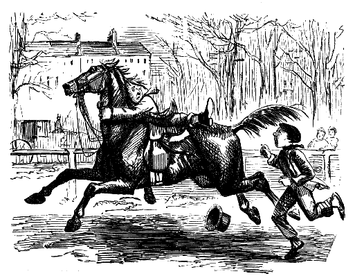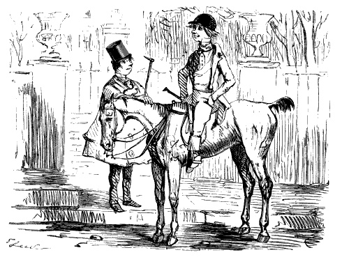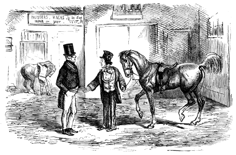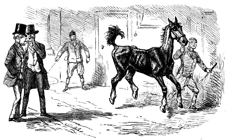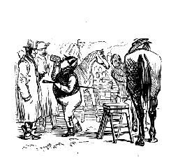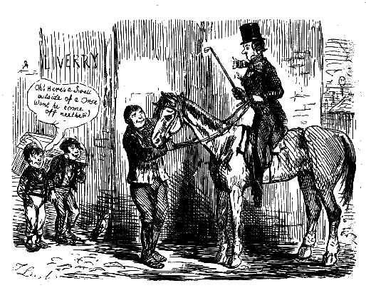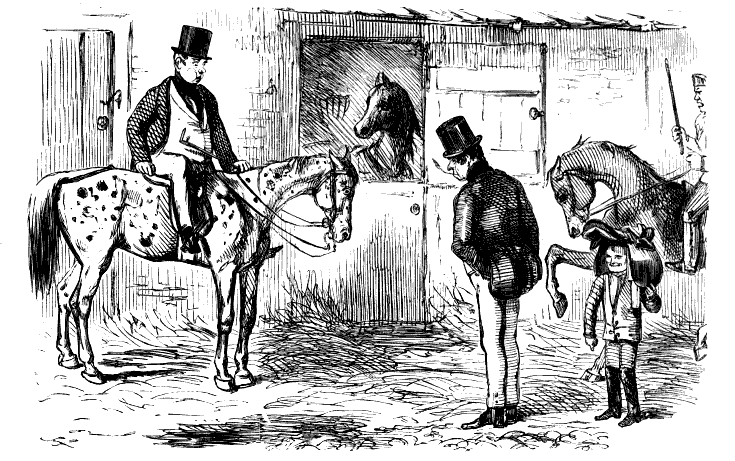 Stable-Keeper (to little Gent). "SET TO KICKING, AND THEN BOLTED INTO A SHOP! DID HE, NOW? AH! HE ALWAYS WAS A LIGHT-'ARTED 'OSS."