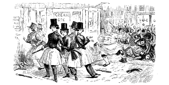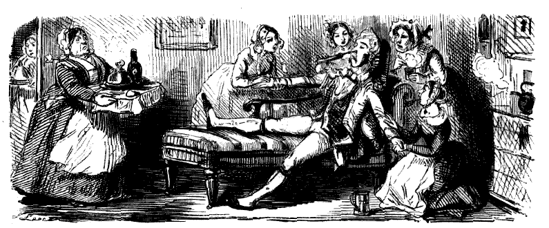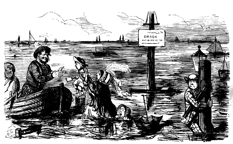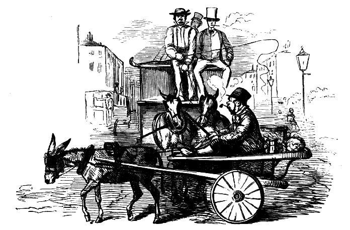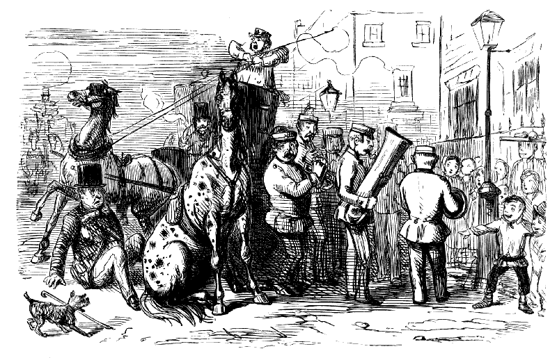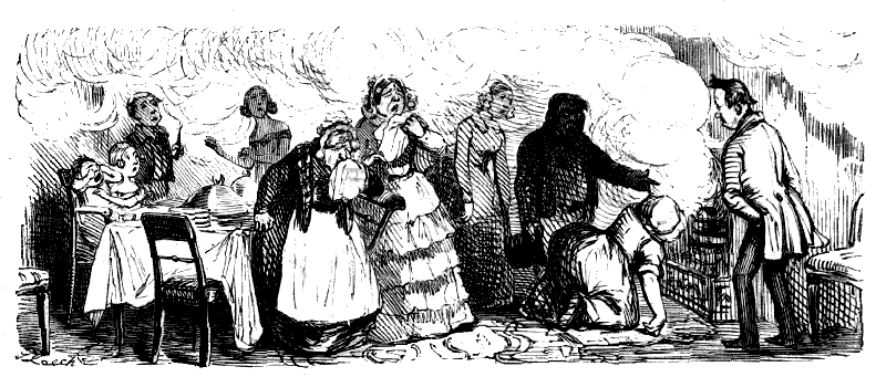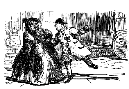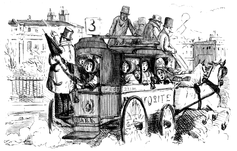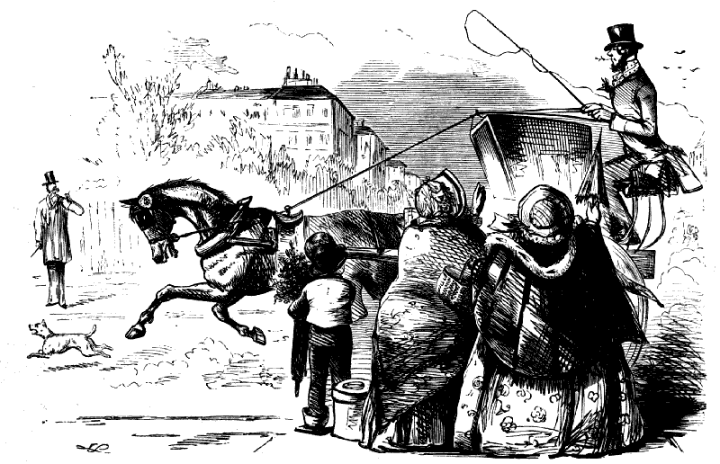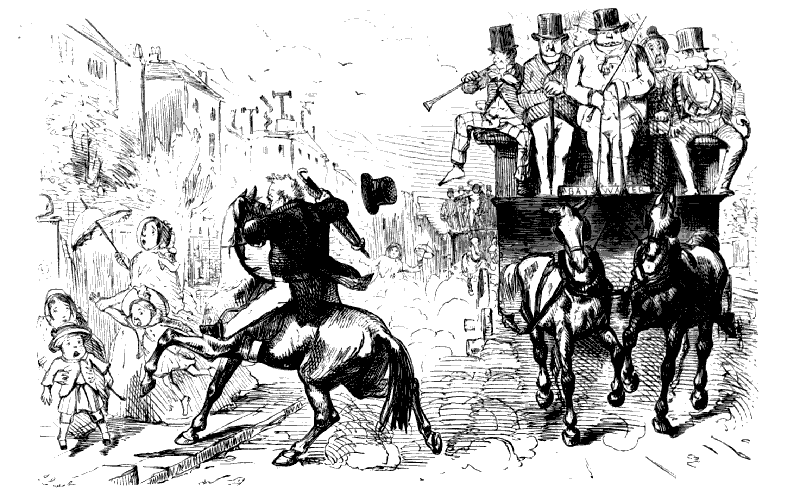 Chorus of Unprotected Females. "CONDUCTOR! STOP! CONDUCTOR! OMNIBUS-MAN! HERE'S A GENTLEMAN HAD AN ACCIDENT AND BROKE A JAR OF LEECHES, AND THEY'RE ALL OVER THE OMNIBUS!"