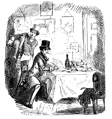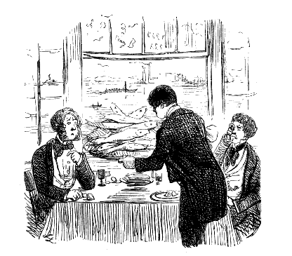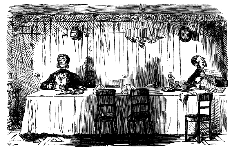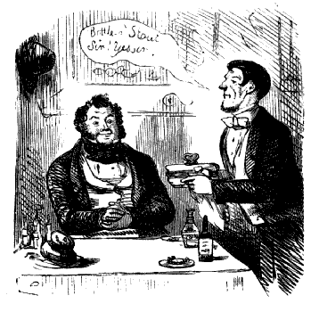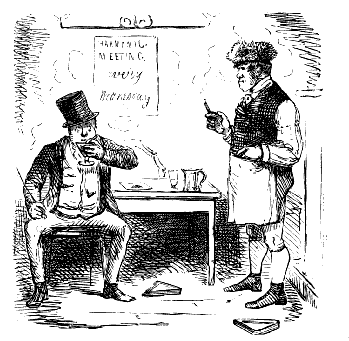 Gentleman (under the influence of White Bait). "WELL, OLD FELLA—REKLECT—PRESHENT COMPANY DINE HERE WITH ME EVERY MONDAY, THURSDAY, AN' SAT'DY—FRIDAY—NO—TOOSDAY, THURSDAY, AND SAT'DY—M:ND AN' DON' FORGET—I SAY—WHAT A GOOD FELLA YOU ARE—GREATEST 'STEEM AND REGARD FOR YOU, OLD FELLA!!!"