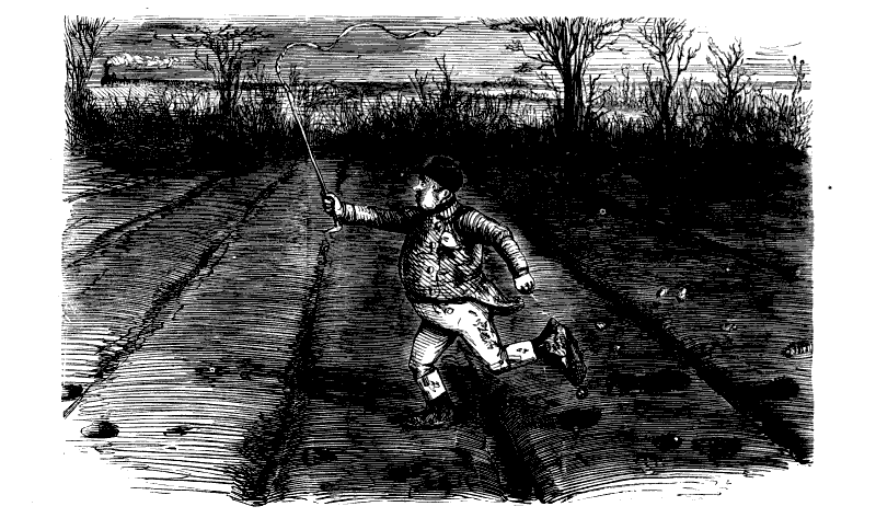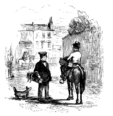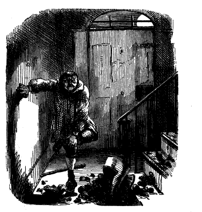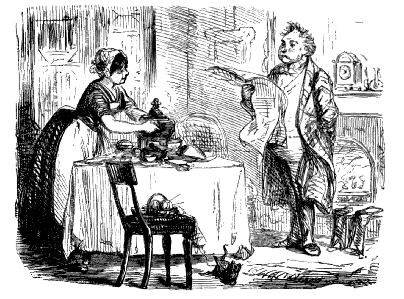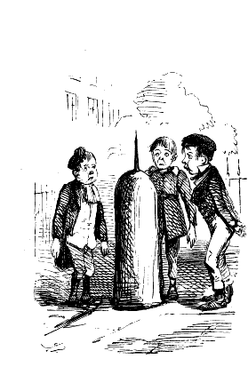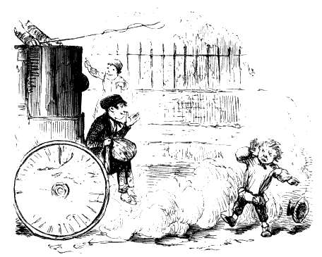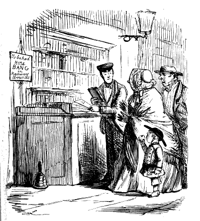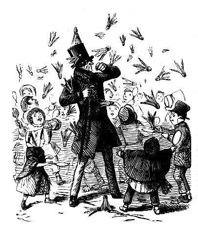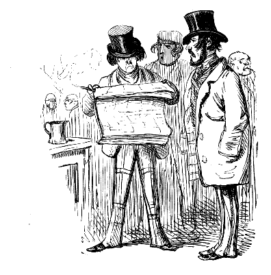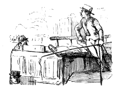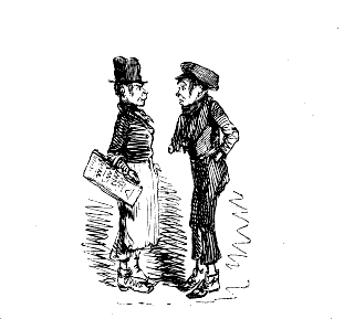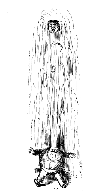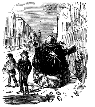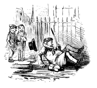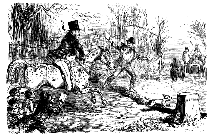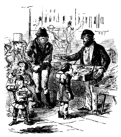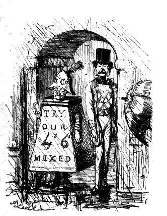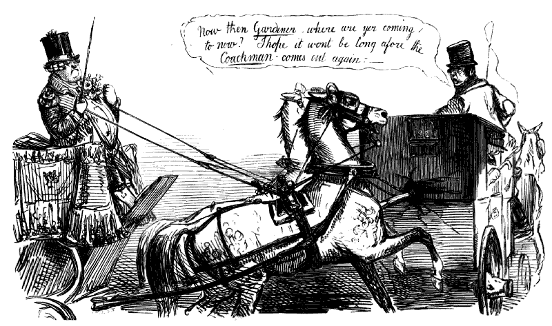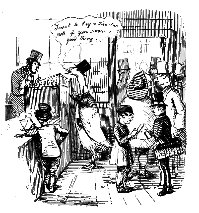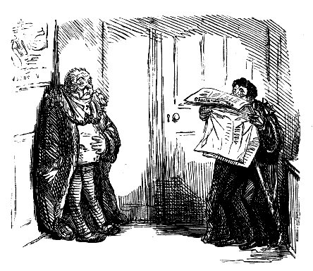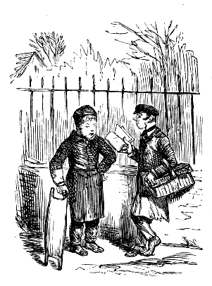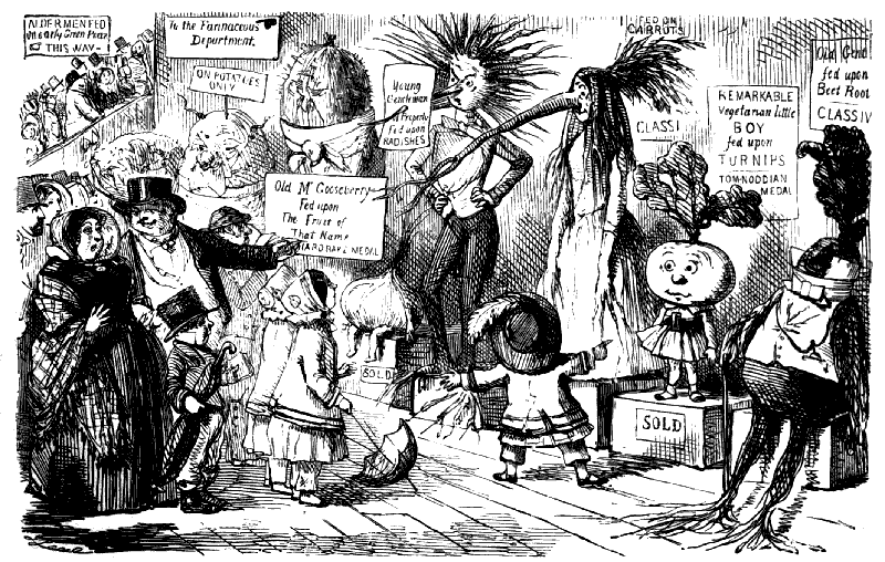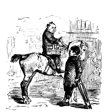 Newspaper Boy (reads). "A GENTLEMAN IN THE N-E-I-G-H—NEIGHBOURHOOD OF——, HAS AT THE PRESENT TIME SEVERAL E-NORMOUS GOOSEBERRIES IN HIS GARDEN, WHICH MEASURE TEN INCHES IN C-I-R-CIR C-U-M-CUM F-E-R-FER E-N-C-E-ENCE CIRCUMFERENCE, AND ARE OF THE A-S-AS ASTON ASTONISHING WEIGHT OF THREE HOUNCES HEACH."