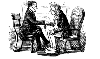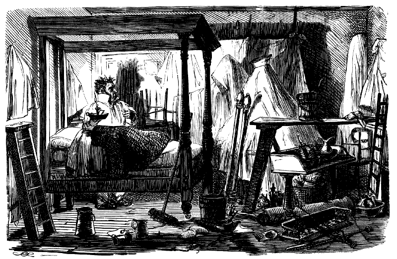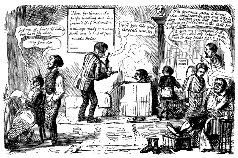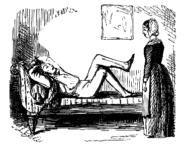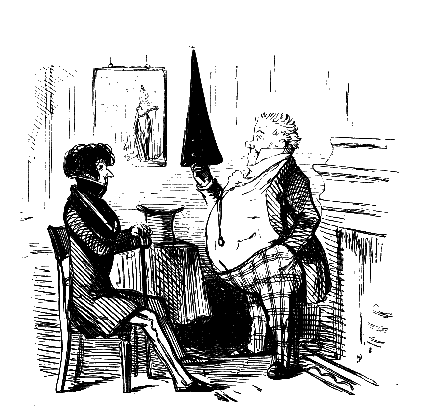"SO YOU'VE TAKEN ALL YOUR STUFF, AND DON'T FEEL ANY BETTER, EH? WELL, THEN, WE MUST ALTER THE TREATMENT; YOU MUST GET YOUR HEAD SHAVED; AND IF YOU WILL CALL HERE TO-MORROW ABOUT ELEVEN, MY PUPIL HERE WILL PUT A SETON IN THE BACK OF YOUR NECK."