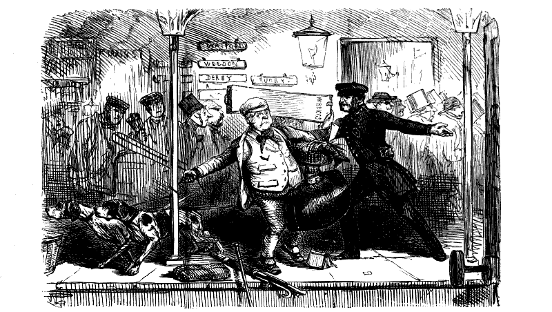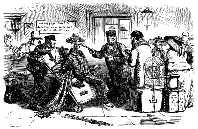 Conductor (slamming the door). "GO ON, JIM! HERE'S AN OLD COVE A CUSSIN AND A SWEARING LIKE ANY THINK!!!
