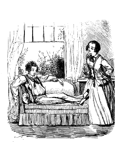 Young Fellow. "WELL, HARRIET, WE ARE ALL BOTHERED WITH SOMETHING. LOOK AT US MEN; WE HAVE TO SHAVE EVERY MORNING, SUMMER AND WINTER!"