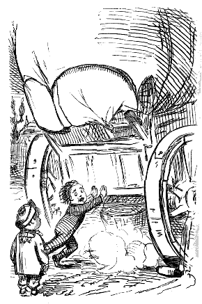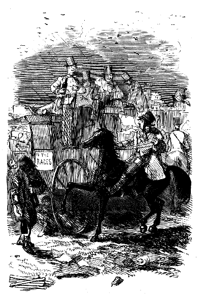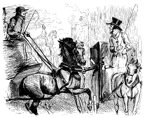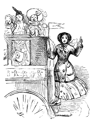 "NOW, THEN, SIR, JUMP UP ON THE ROOF, AND LOOK SHARP, PLEASE, SIR, HERE'S T'OTHER BUS A-COMING."