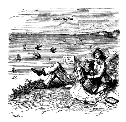 Frederick (who has about as much poetry in him as a Codfish). "HM—AH! YES. PER-WAPS. BY THE WAY, BLANCHE—THERE'S A FELLA SWIMPING. S'POSE WE ASK HIM IF HE CAN GET US SOME PWAWNS FOR BWEAKFAST TO-MOWAW MORNING?"